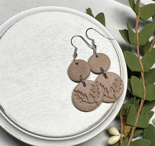 Wheat Print Embossed Polymer Clay Earrings * 2 Colors